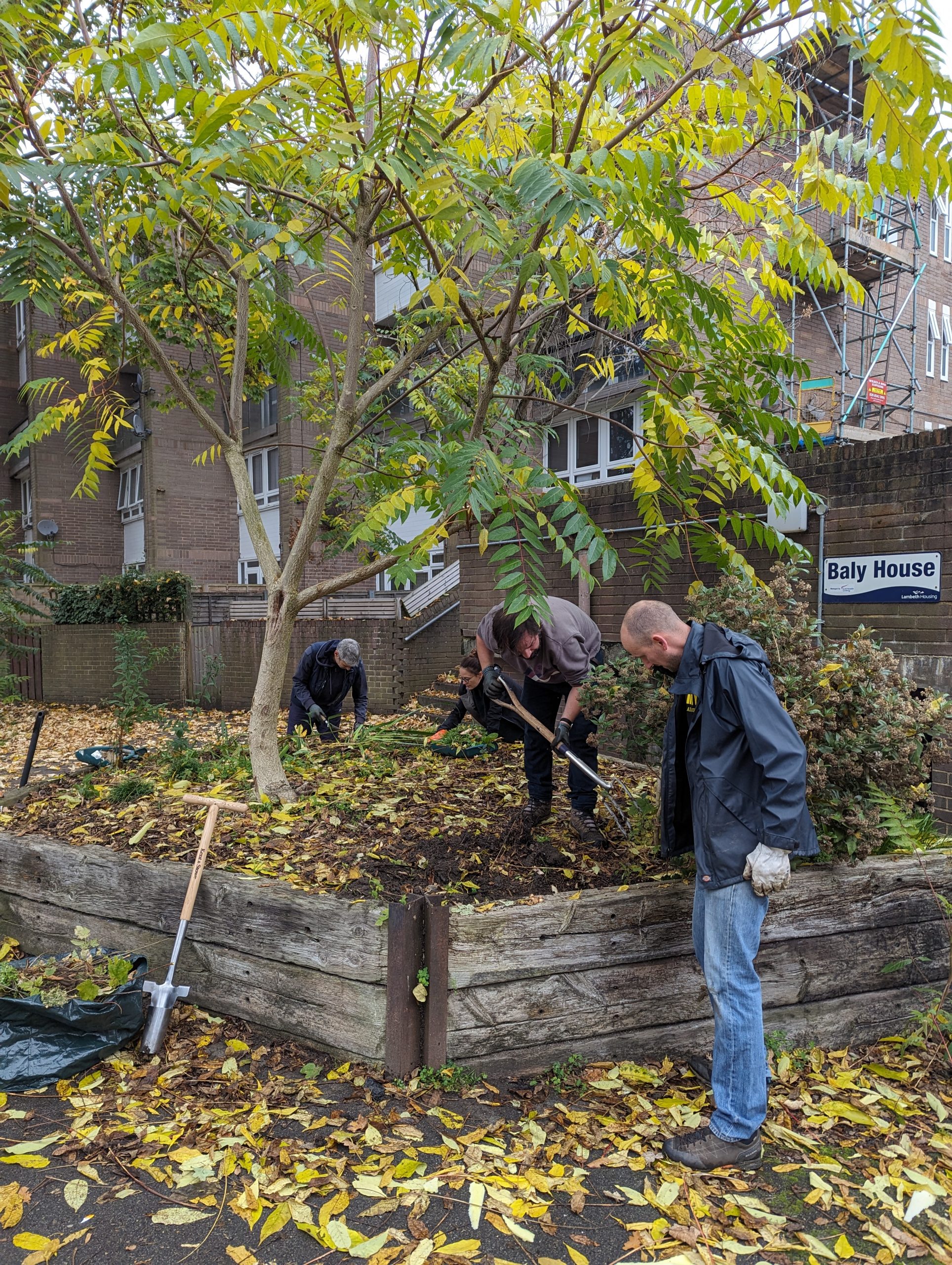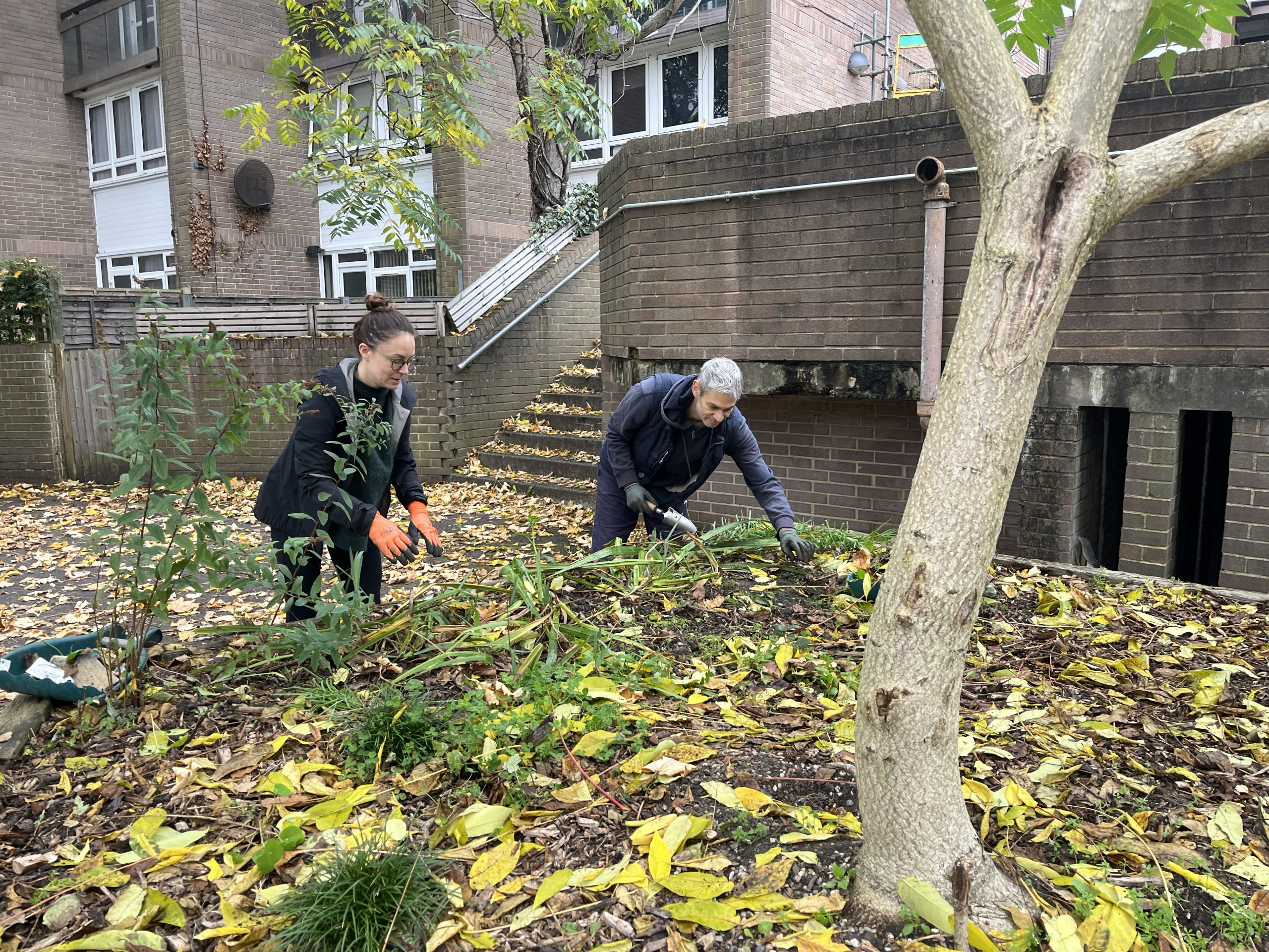 We took delivery of a trug of bulbs and tools facilitated and funded by Incredible Edible Lambeth (IEL). Thea from IEL joined us to help with our planting session – There were over a thousand bulbs to plant! A mix of daffodils, tulips, anemone, forbesii, and muscari will brighten up our estate when they flower next spring.